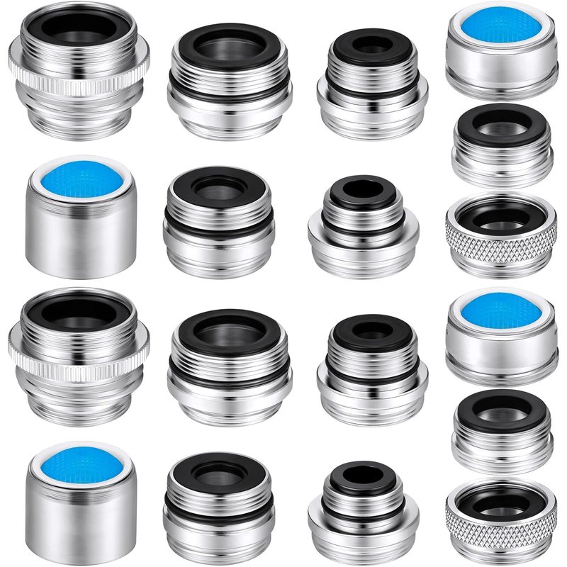 18 Pieces Faucet Adapter Kit Brass Male and Female Sink Aerator Adapter Set Kitchen Sink Faucet Adapter to Garden Hose, Water Filter, Standard Hose via Diverter