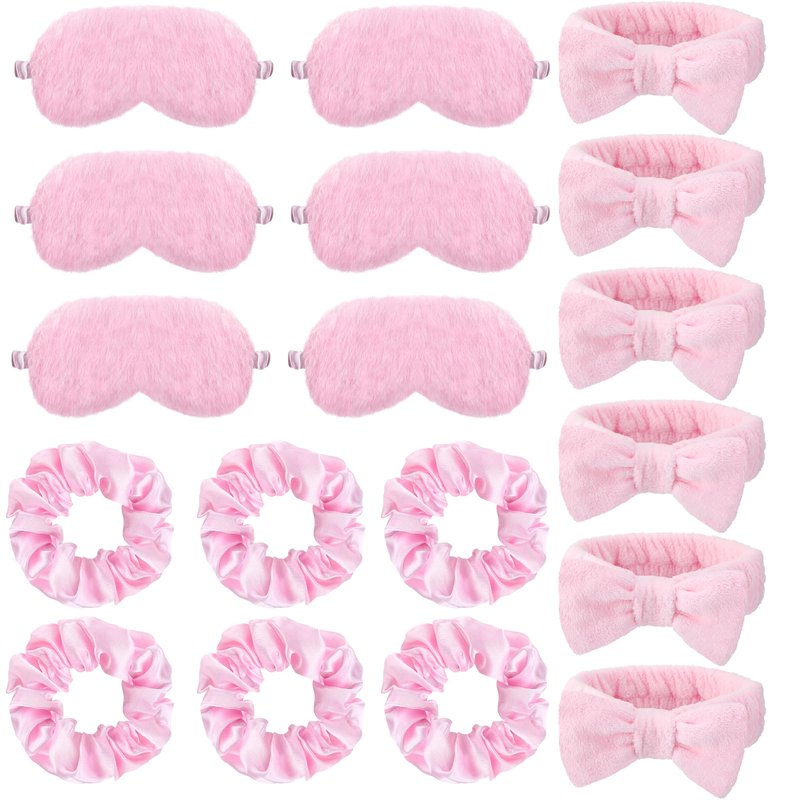18 Pieces Sleepover Party Supplies for Women, Included 6 Pieces Spa Headband 6 Pieces Sleep Eye Mask 6 Pieces Hair Scrunchies, Essential Sleepover Party Favors for Spa Birthday Bachelorette Slumber