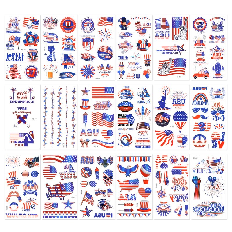 - Product Contents: You will receive 18 sheets 4th of July temporary tattoos with rich styles, sufficient quantity to meet your different decoration needs. You can also share it with your friends and family.