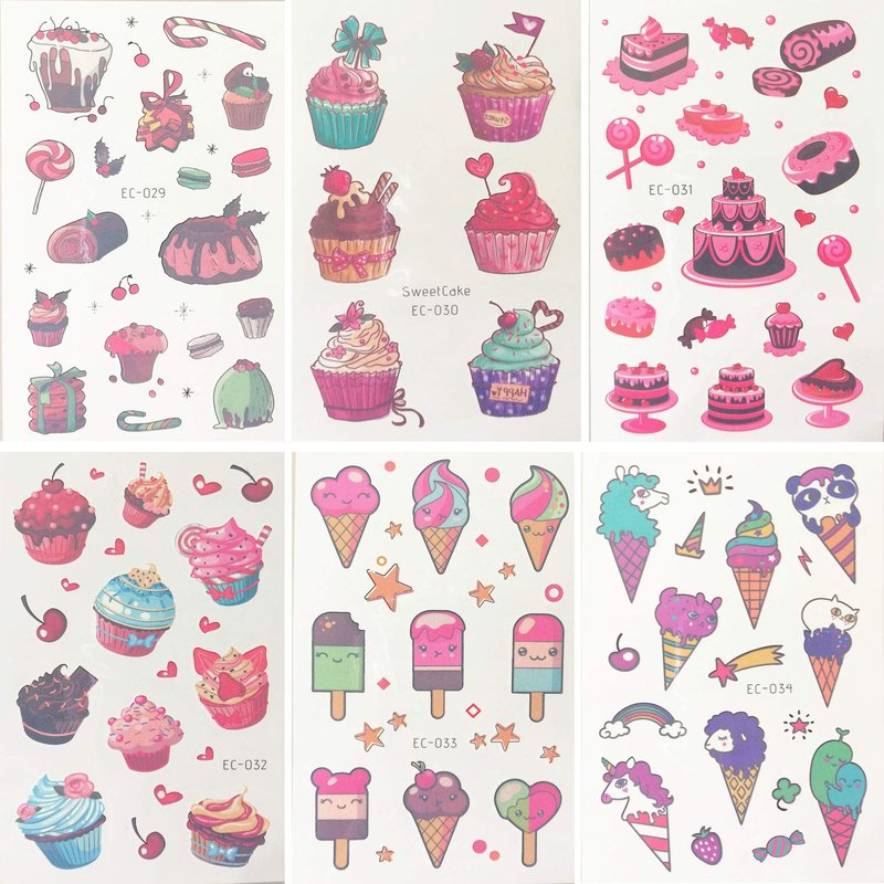 18 Sheets of Dessert Temporary Tattoos (each sheet with different patterns on)