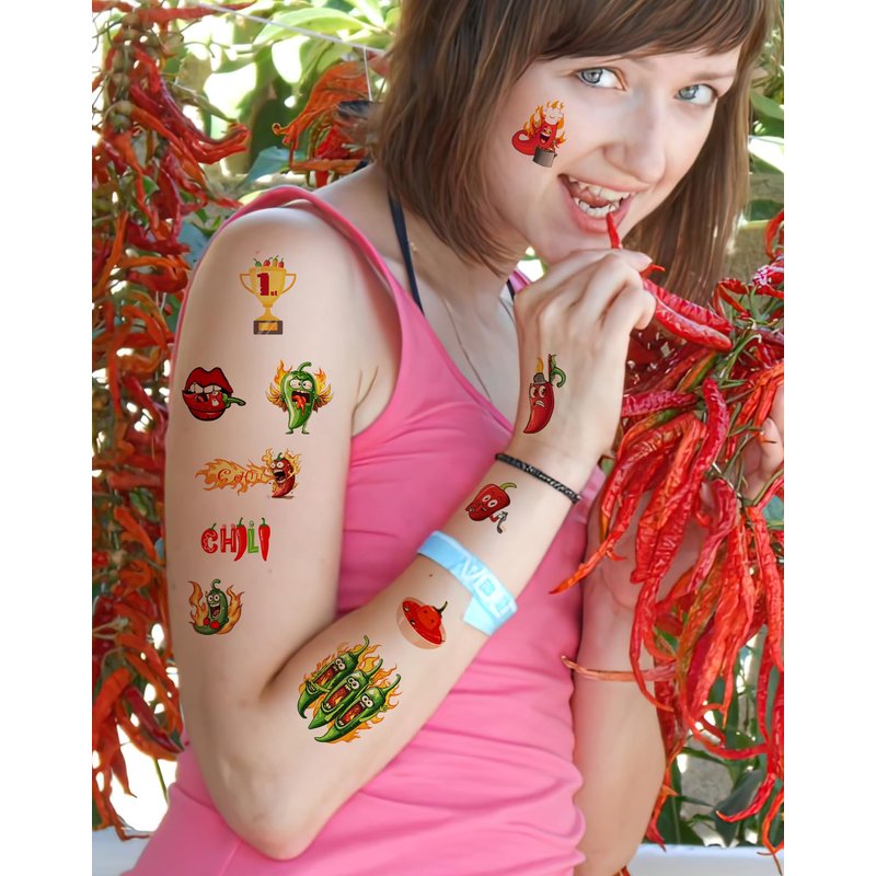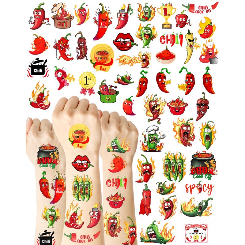 - Chili Cook Off party decorations Package includes 180 pieces of Chili themed temporary tattoos, which can be used wherever you want, such as arms, face, and hands