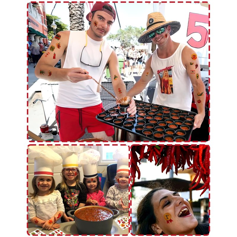 - Friendly to Skin Chili Cook Off party decorations,our temporary tattoos have been put through rigorous party testing and are 100% guaranteed to last all day,Non-toxic, harmless and tasteless, the tattoos do not cause irritation