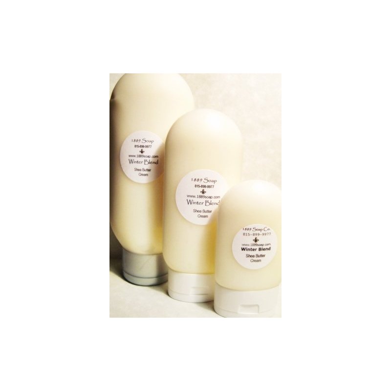 Our rich shea butter lotion is made with the same formula as our popluar Winterblend Shea Cream. 6oz soft sided squeeze bottle stores upside down on it's flip top cap for ease of use and can be refilled. Super moisturizing and good for sensitive skin. This is our scented version - great for people without allergies to fragrance products. See our cream listings for unscented moisturizing products.