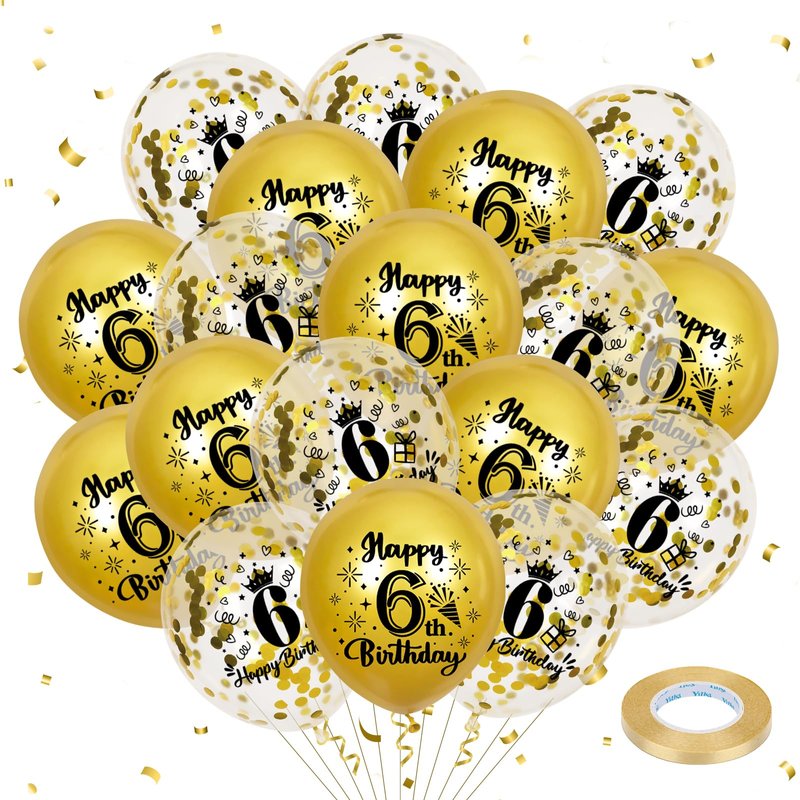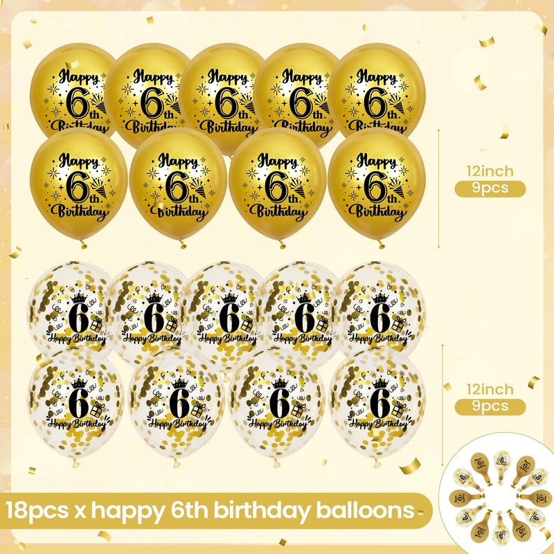 - 6th Birthday Party Decorations: You will get 9 gold balloons and 9 confetti balloons, with a roll of rose gold ribbon. The retro 6th birthday balloons are a must-have decoration for the 6th birthday party and can be used as a photo background for everyone to record birthday moments