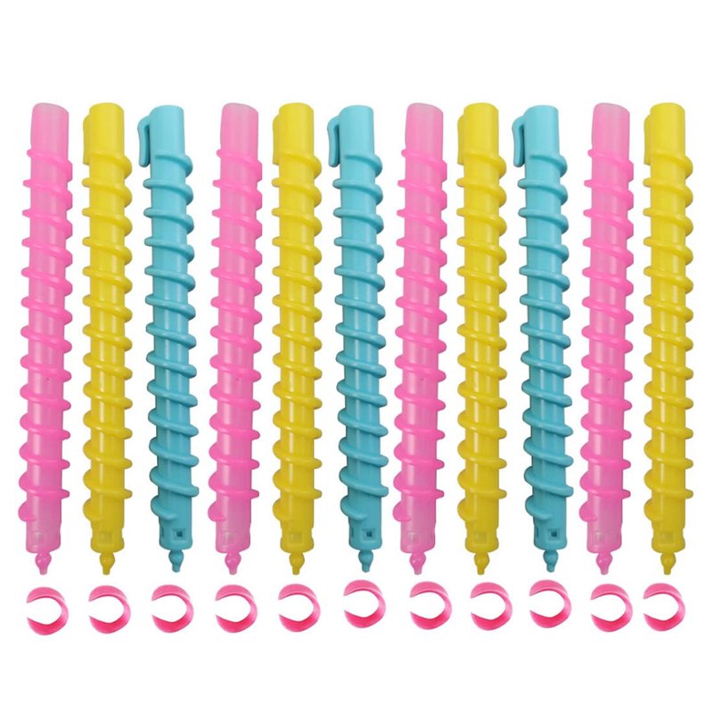 Package: 18PCS spiral curling iron, material: plastic, no heat, friendly to your hair.