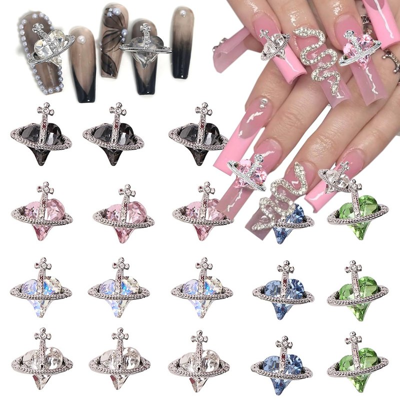 18Pcs Shiny Heart Nail Charms Planet Nail Art Rhinestone with Heart Design Crystal Nail Jewelry Silver Nail Art Charms for Acrylic Nails Heart Shape Nail Gems for Women DIY Manicure Accessories
