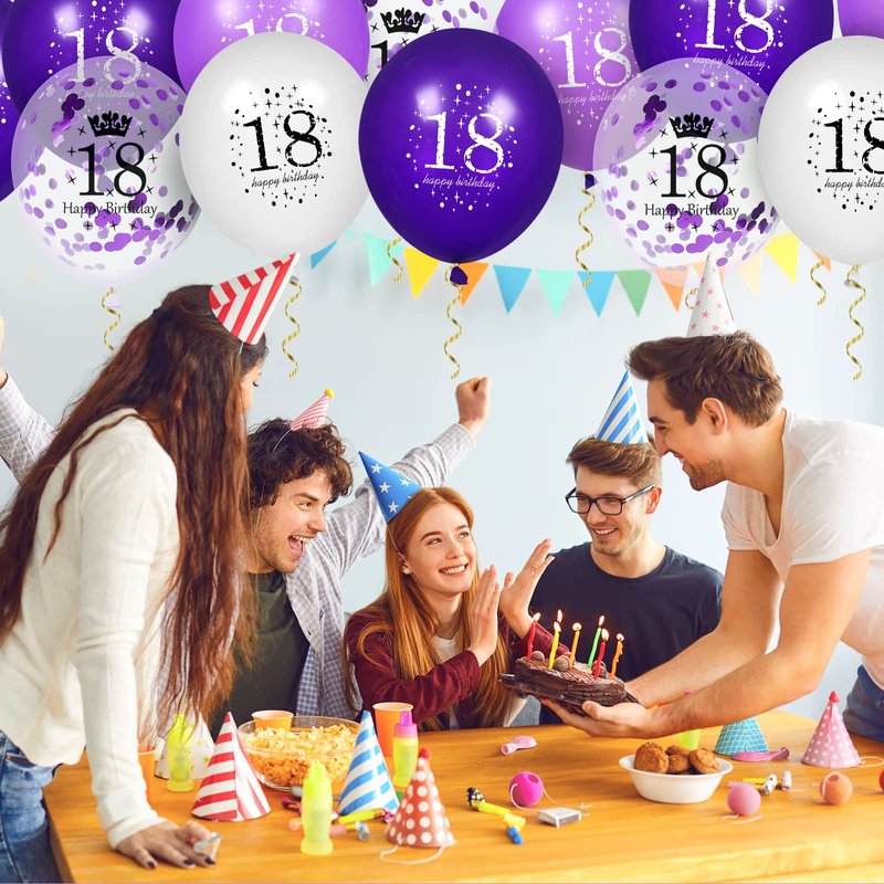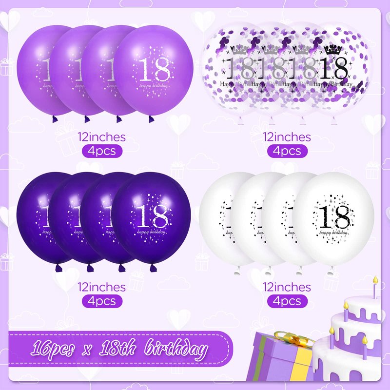 18th Purple Birthday Balloons Decorations, 16PCS Purple White Happy 18th Birthday Confetti Latex Balloons for Girls Boys Happy Birthday Party Wedding Anniversary Indoor Outdoor Party Supplies,12 Inch