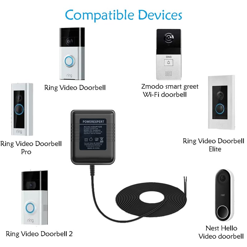 - Application: All versions of Video Doorbell and other devices that require constant 18 volt power for operation. For Zmodo smart greet Wi-Fi doorbell, Nest Hello doorbell, Video Doorbell 2, Hello Doorbell, Wyze Doorbell Pro, Arlo Video Doorbel, Blink Video Doorbell, Eufy Video Doorbell, Simplesafe Video Doorbell, Ring doorbell, Ring Video Doorbell 2, Ring Video Doorbell Pro, Skybell Wifi Doorbell, Arlo Camera.