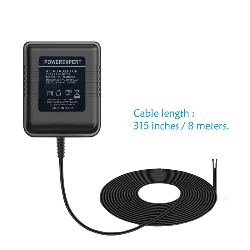 - Product Parameters: Input AC 120V AC 60Hz 0.2A, output 18V 500mA. Cable length is 315 inches / 8 meters. Color:Black.