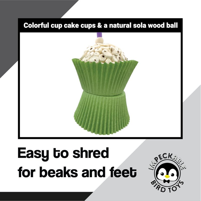 - COLORFUL & ENTICING - The cup cake cups are decorated with assorted bright bird pleasing colors. The paper cups and sola ball offer pets pleasant, enticing, easy to shred materials to enjoy.