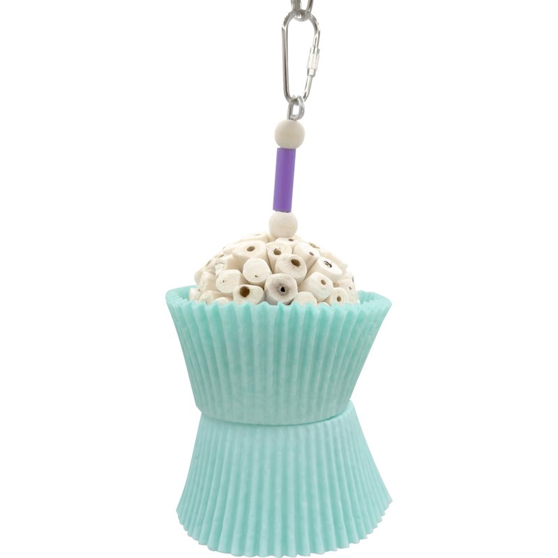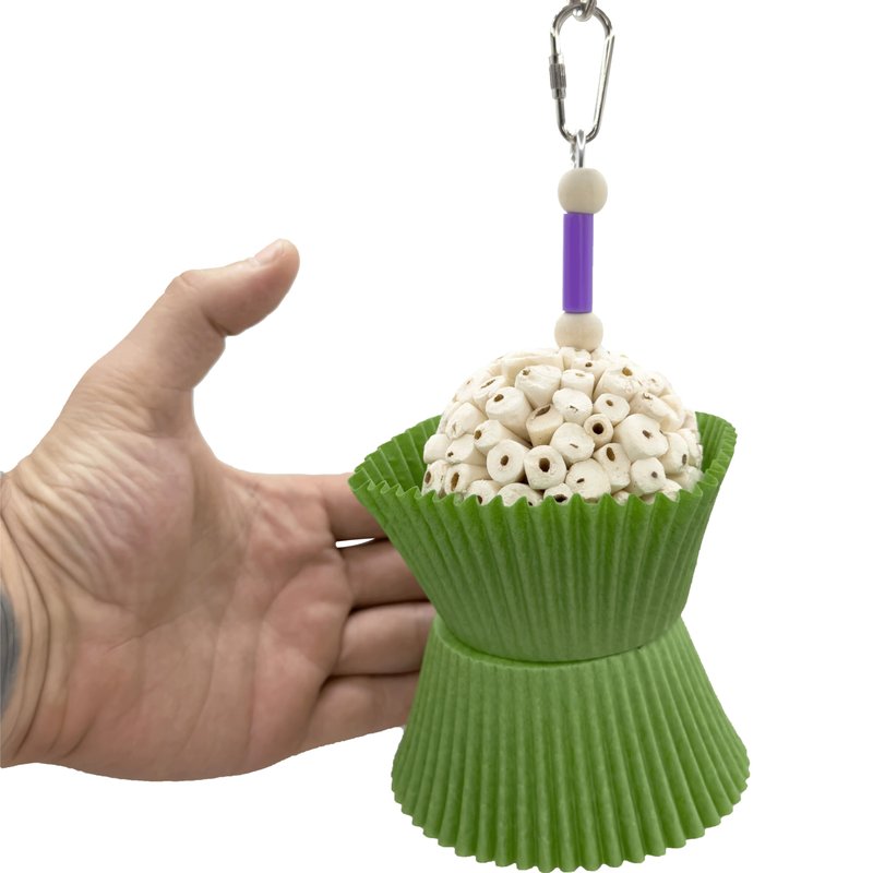 1926 Medium Sola Cake - Shreddable hanging bird cage toy, Natural sola wood ball, Food grade cup cake cups, Delightfully easy to shred, Great for small to med size birds Conure Caique Quaker Cockatiel