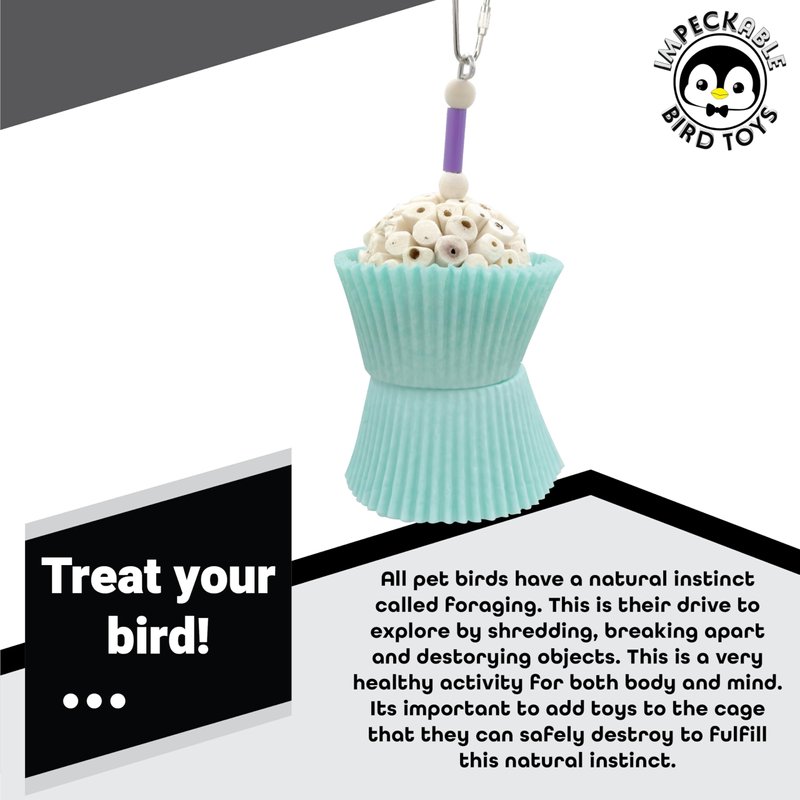 - FUN TO CHEW - The body of the bird toy is made from a handmade sola wood ball that sits inside of food grade cup cake cups. Sola wood is a super lighweight wood and is enjoyable for birds to chew.