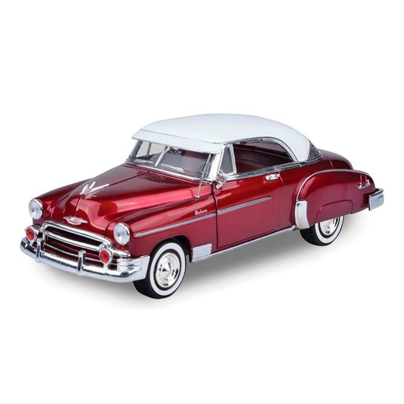Brand new 1:18 scale diecast model of 1950 Chevy Bel Air Burgundy with White Roof die cast model car by Motormax 73111burgundy