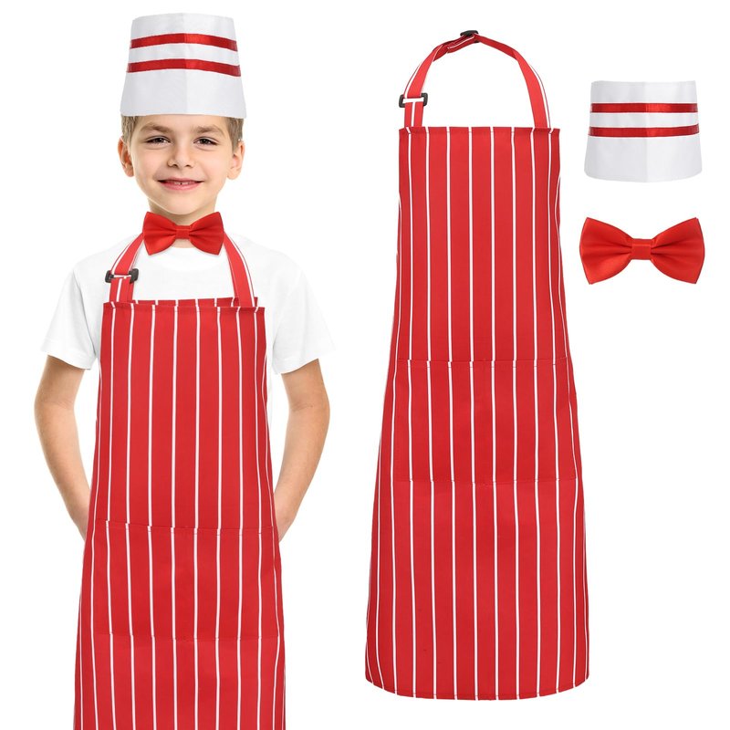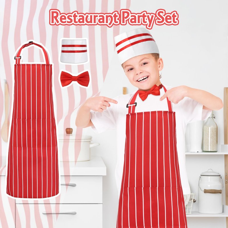 - WHAT YOU GET - You will receive 1 piece of red and white striped apron, 1 piece of soda jerk chef hat, and 1 piece of adjustable red bow tie, the combination can meet your chef dressing needs and your dressing up game