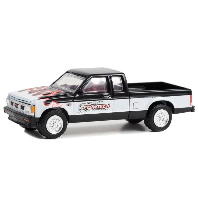 1990 S-15 Sierra Pickup Truck Black and White with Flames Running on Empty Series 16 1/64 Diecast Model Car by Greenlight 41160D