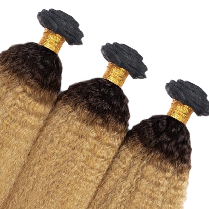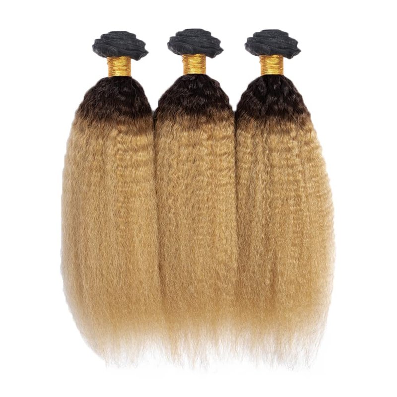 1B27 Kinky Straight Bundles Honey Blonde Human Hair Bundles 14 16 18 Inch Peruvian Virgin Hair Extensions 2 Tone Black and Blonde Bundles 1B27 Kinky Straight Bundles