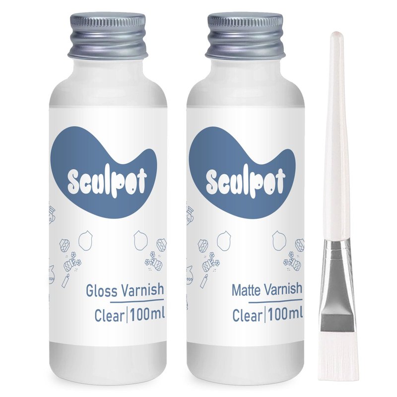 - Air Dry Clay Glaze Kit - You will receive 100ml gloss clay varnish, 100ml matte clay glaze, and 1 brush for easier application. The air dry clay varnish kit can meet your various gloss needs and is easier to operate