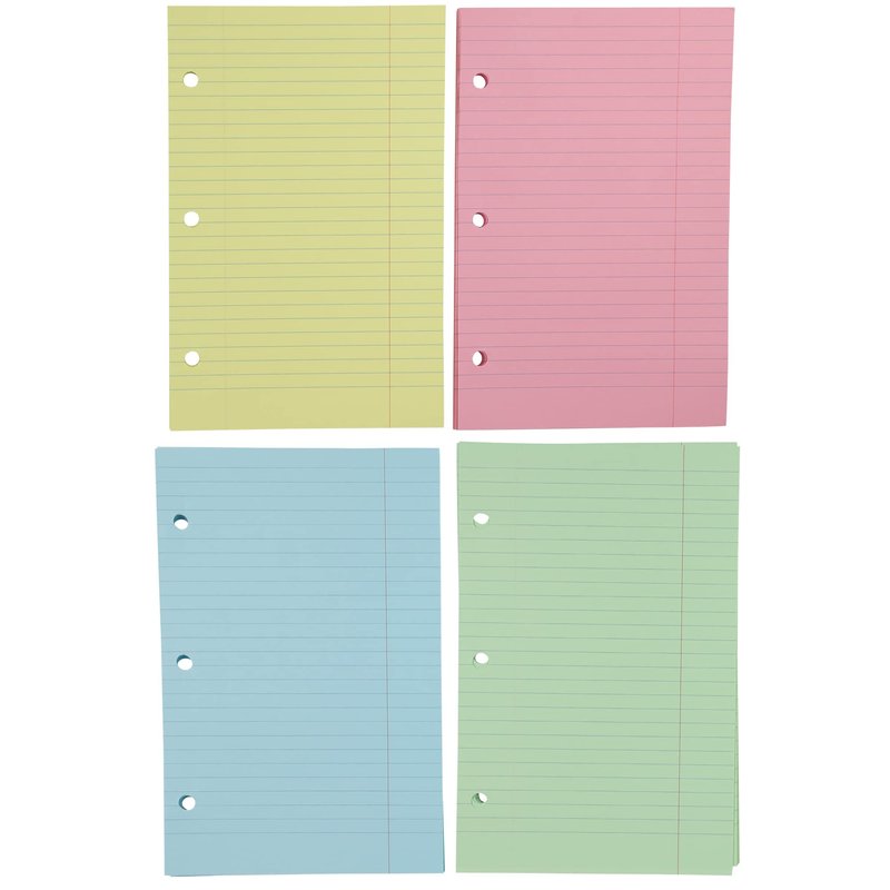 Color code notes and other information with this pastel filler paper. Each sheet comes in one of four assorted colors, including pink, blue, green and yellow, and the paper is three-hole punched,