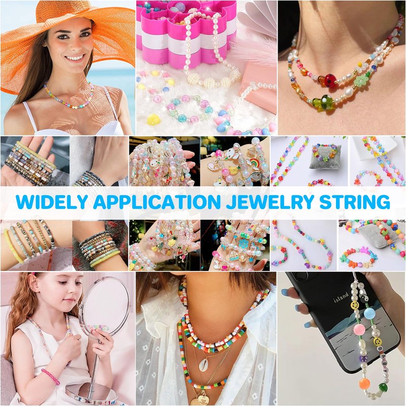 - 【Wide Applications】➤The clear bead thread is suitable for bracelets,anklets,necklace jewelry making and other DIY craft projects,also fit for hanging small artworks,balloons,small ornaments etc,whether at your home,office or outside.High quality elastic polyester,it can be used for a long time.