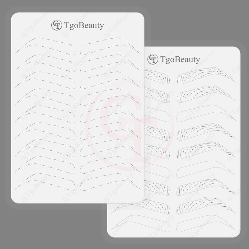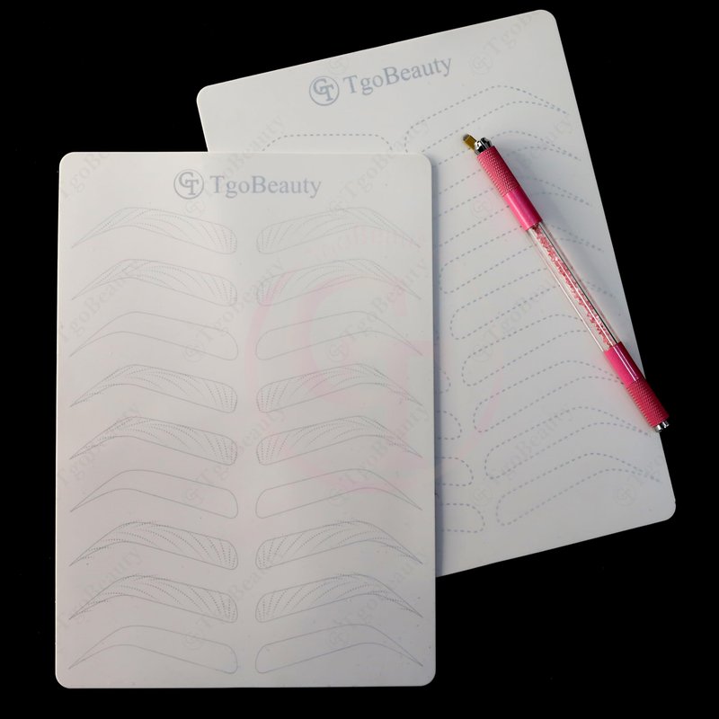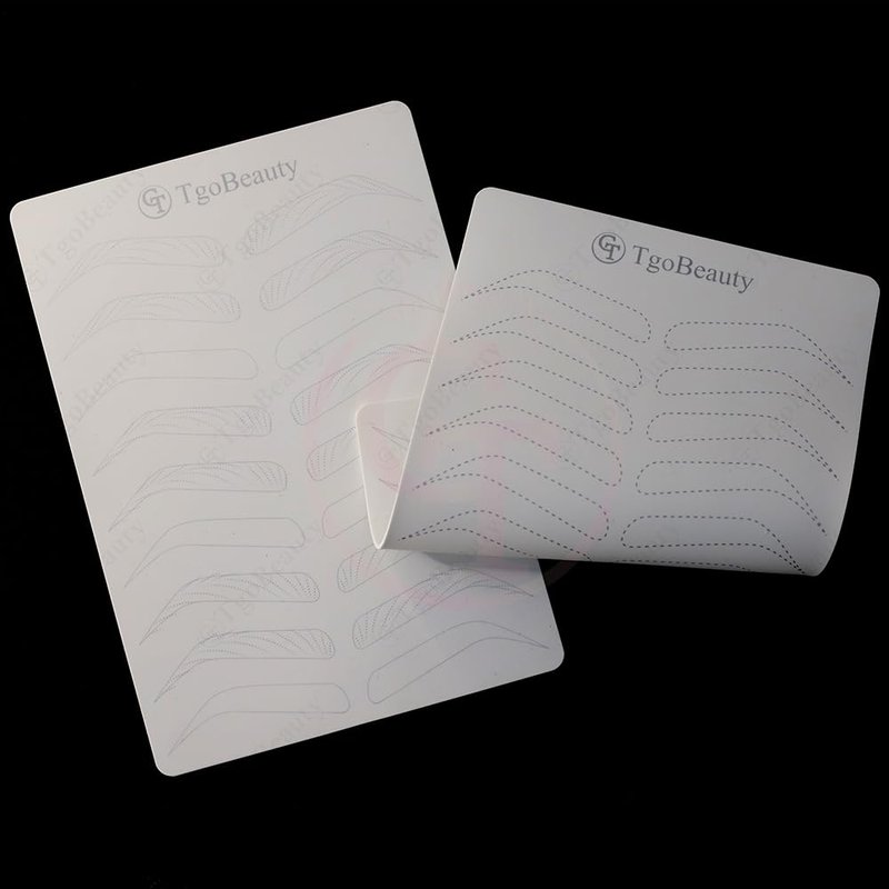 Features: Item Name: TgoBeauty Brow Permanent Makeup Practice Skin Material: Silicone Skin Color: White Shiny Silver Outlines Thickness: 1.5mm Double Sided Printed Front Side: 9 pairs empty eyebrow shapes with thin tracer dots Back Side: full hairstroke brow frames with 3 different common patterns Can be used to practice any brow technique. Level up your nano hair stroke technique. Package: 1pc X White Brow Permanent Makeup Practice Skin