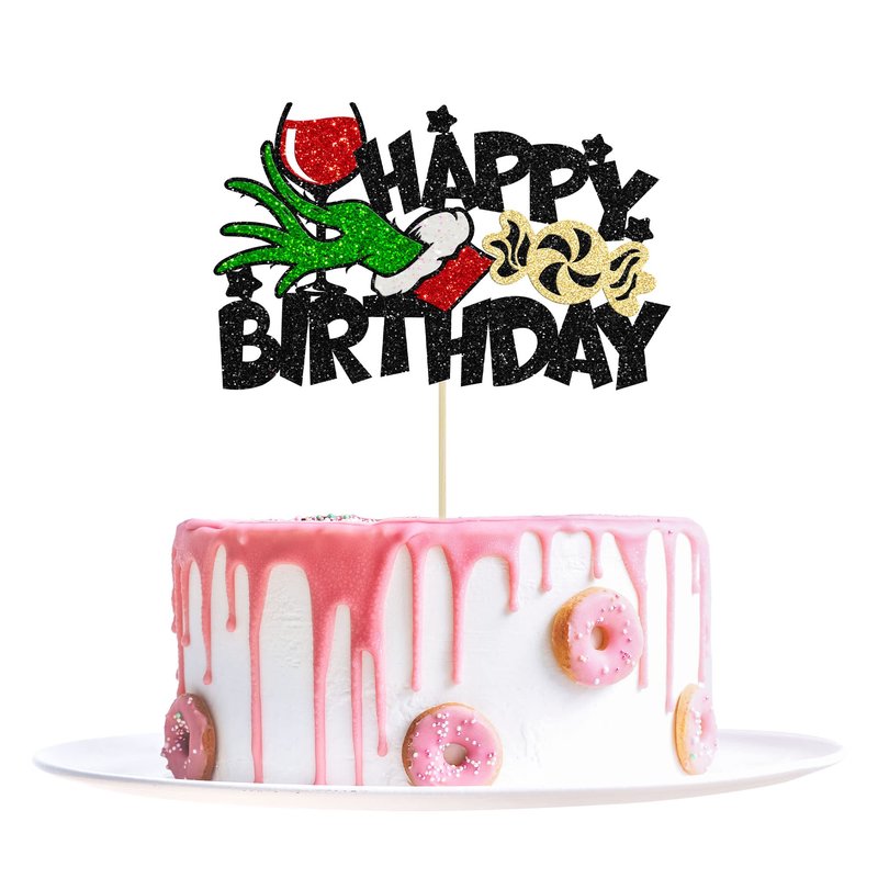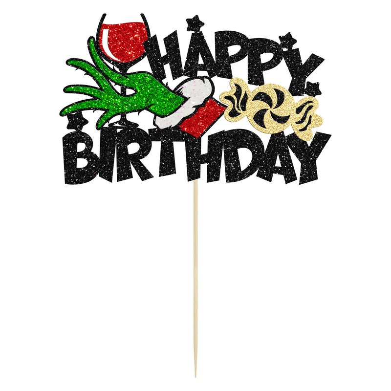 1Pc Green Happy Birthday Cake Topper for Gnchh Merry Christmas Birthday Themed Santa Cake Decorations Teenager Girls Boy's Gift Birthday Party Supplies