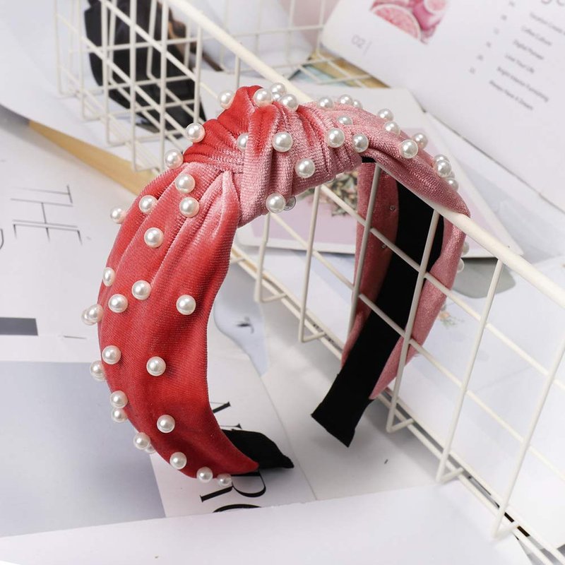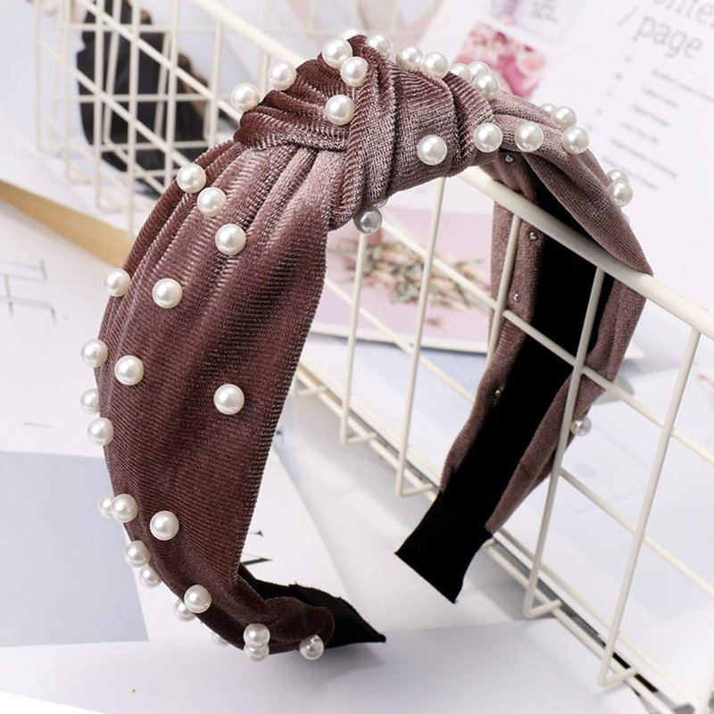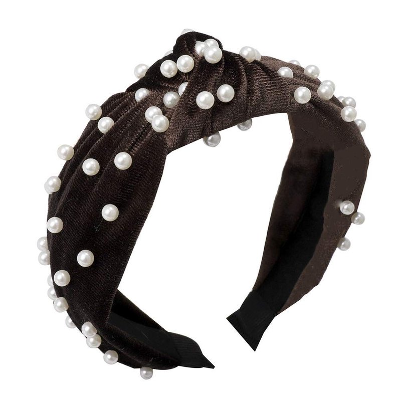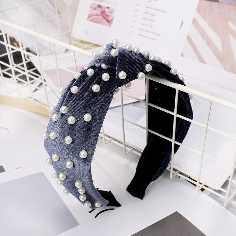 1Pc Navy Blue Vintage Twisted Faux Pearl Beading Women Hair Hoop Wide Velvet Headband Headwear Nail Pearl Velvet Knotted,Fashion Headbands,Women's Fashion Headbands Beauty and Personal Care,Hair Care