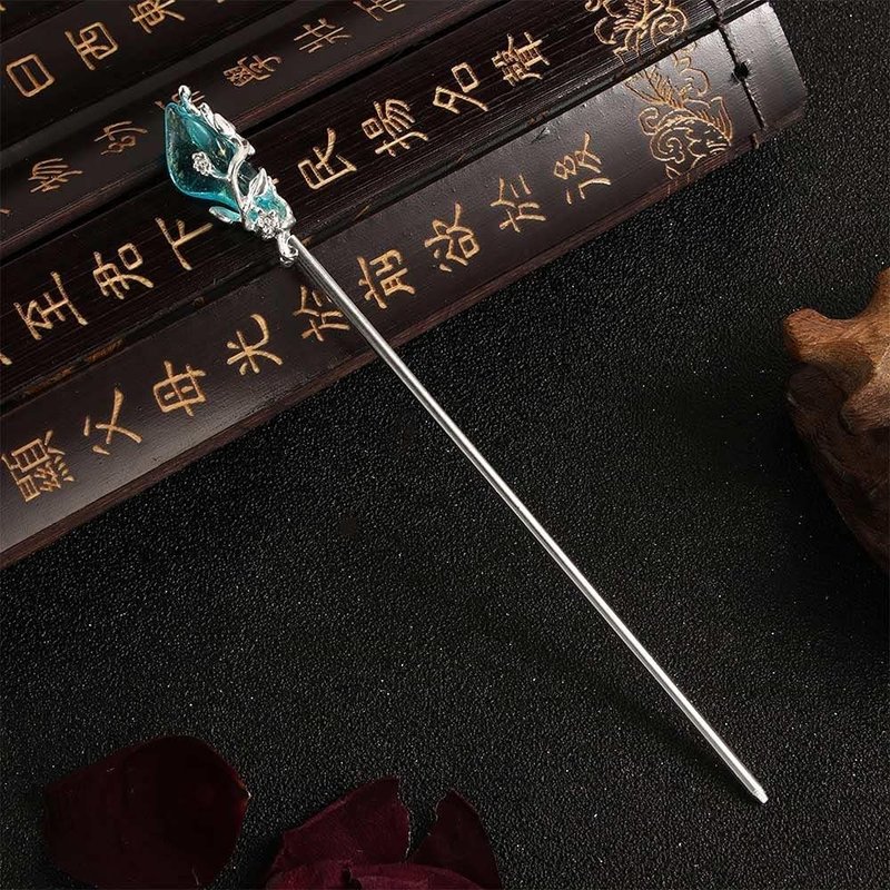 1Pc Silver Blue Chinese Hair Stick Japanese Hairpin Hair Chopsticks,Jade Metal Retro Hair Chopsticks Clips and Barrettes, Vintage for Women Girl Hair Pins