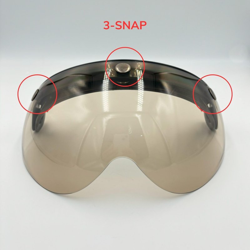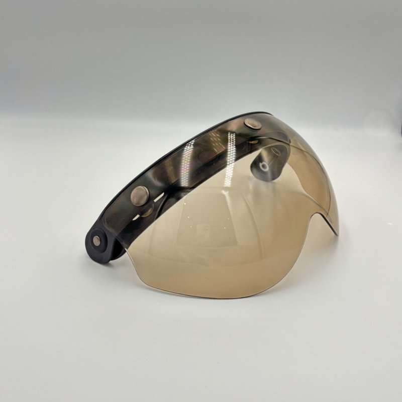 (1PCS) 3-Snap Removable Motorcycle Helmet Visor/Shied with Flip-Up Tinted Bubble Lens | Universal, Retro, Windproof & Anti-Fog Mini Sun Shield Replacement for Half-Face Helmets (Brown)
