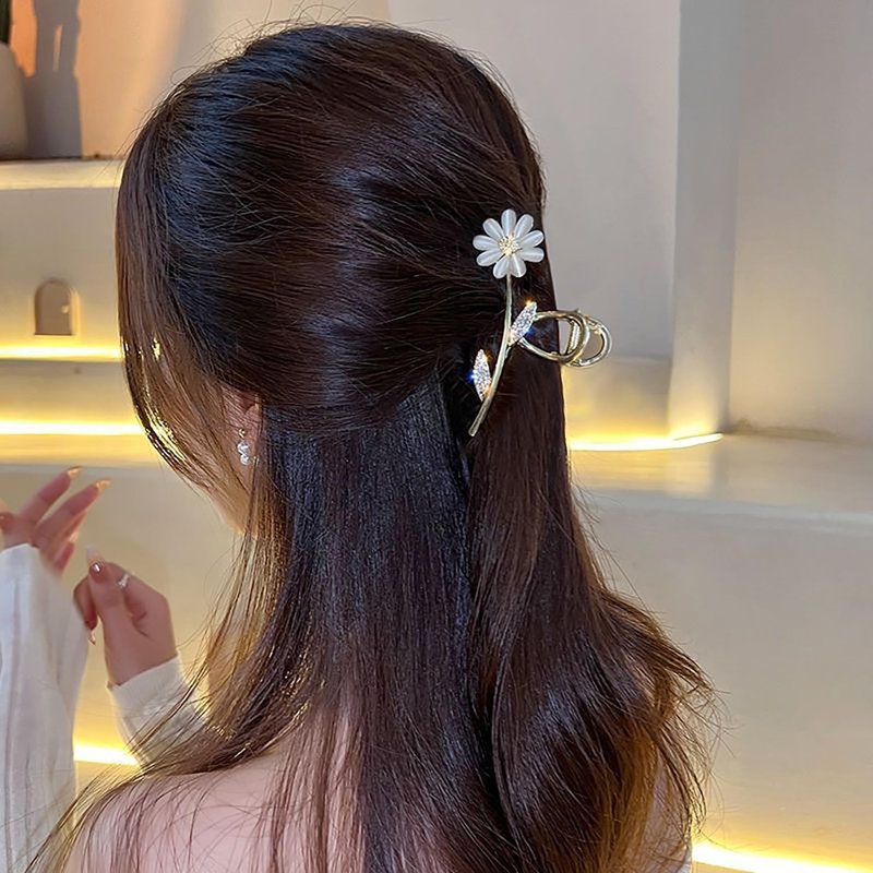 1Pcs Flower Hair Claw Clips Cat Eyes Flower Hair Clips with Rhinestones Design Cute Daisy Flower Claw Clips Strong Hold Hair Clamps Non-Slip Hair Jaw Clips Spring Hair Supplies for Thick/Thin Hair