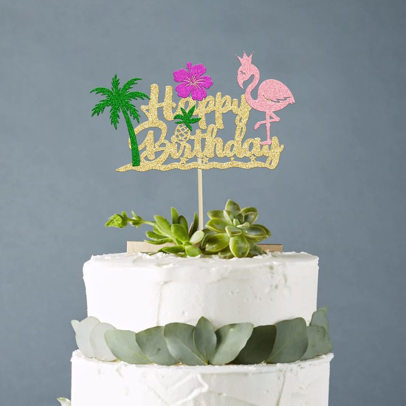 - 🍰【No Assembly Required】: 1Pcs Flamingo Birthday Cake Topper has already assembled! This Flamingo Birthday Cake Topper saves your time and super easy to use. You can easily dress up your hawai luau theme cakes, yes! but don't stop there, put them into desserts, cookies, fruit pieces, appetizers, muffins and so much more!