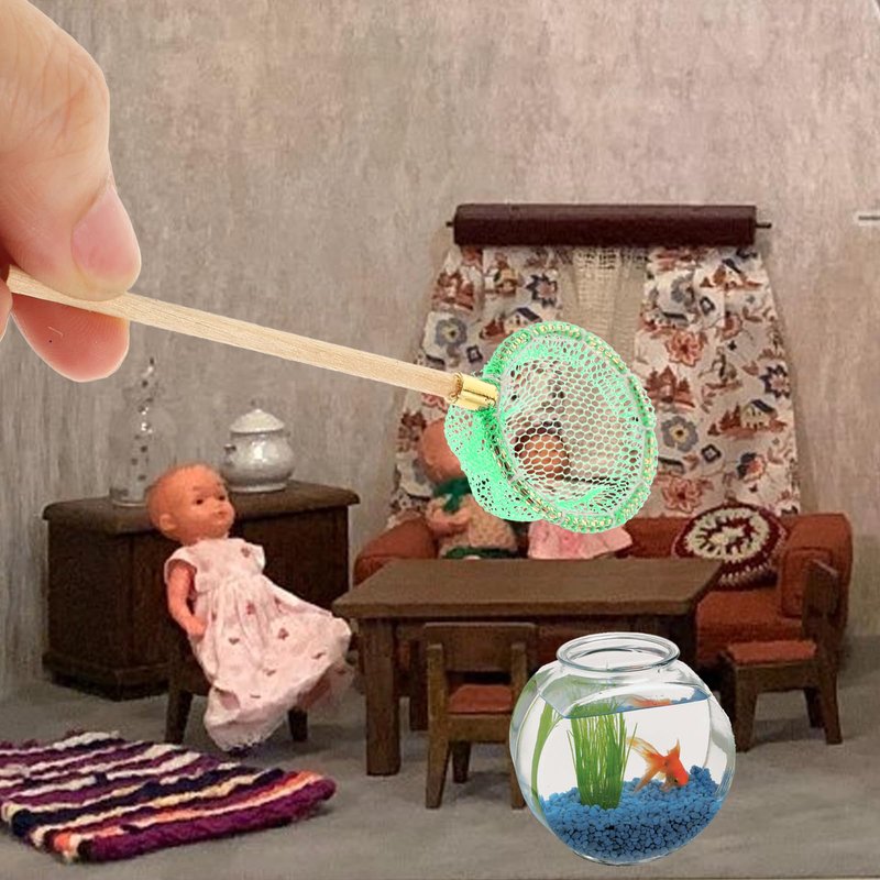 - Miniature Fishing Rod - This miniature fishing pole and fishing nets models set is house accessories, easy to place and versatile