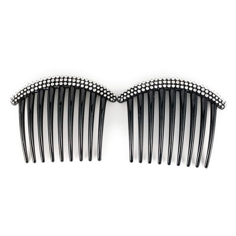 - the combs have silver plastic faceted rivets along the top