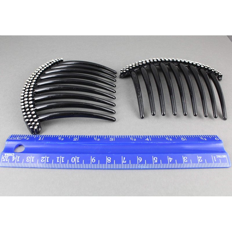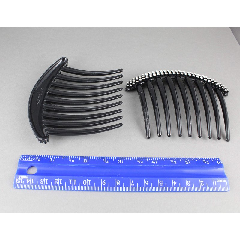 2 Black Big Huge Hair Comb set pack Silver plastic teeth side clip 4 inches wide