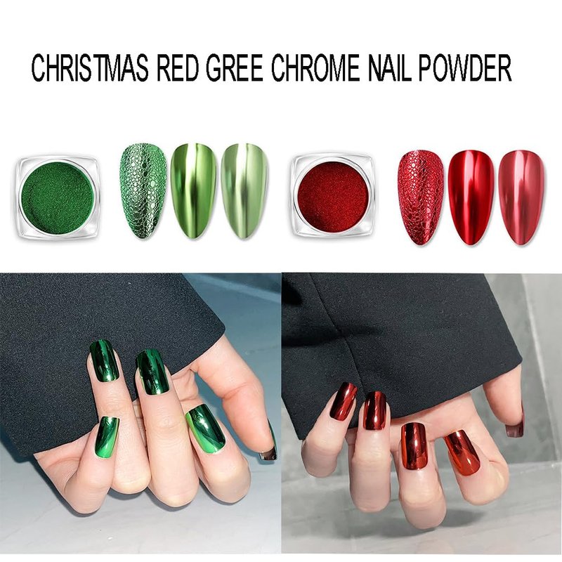 - 【Red Green Nail Powder Kit】:Chrome nail powder made of ultra fine resin powder, it belongs to the advanced material of nail decorations.Once applied, it has a shimmery mirror finish that shimmers even in the sun, creating a unique nail color.