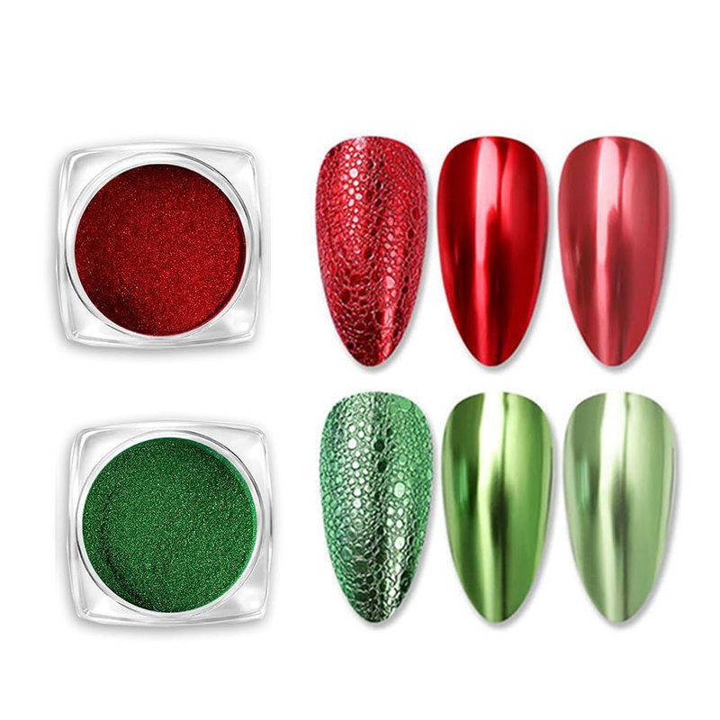 2 Boxes Christmas Red Green Chrome Nail Powder, Mirror Effect Aurora Magic Pearlescent Nail Jewelry Glitter Powder Holographic Pigment Mermaid Pearl Aurora Dust Nail Powder, DIY Nail Art Decorations