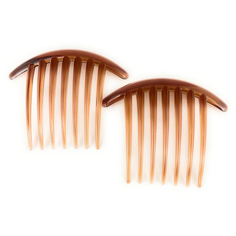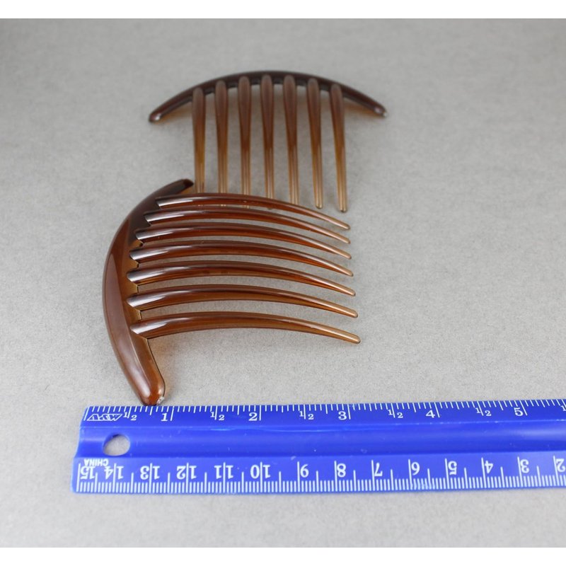2 Brown Big Huge Hair Comb set pack Silver plastic teeth side clip 4 inches wide