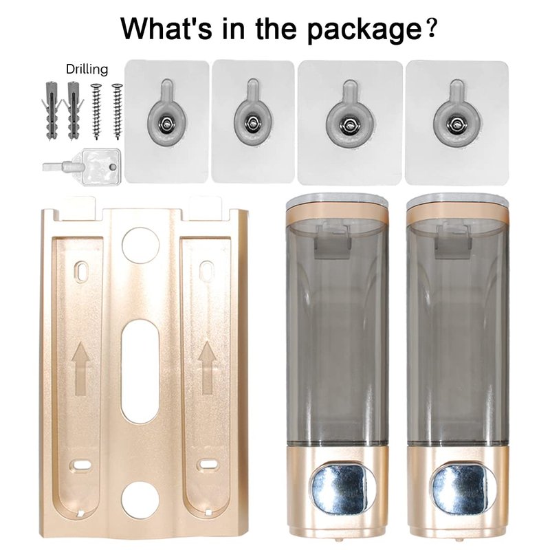 - ▲【Wall-mounted】: 2 wall-mounted soap dispensers, double liquid dispenser design, one bottle can hold shower gel, the other bottle can hold shampoo, if it is blocked, there will be no liquid. It is easy to condense liquid in the stopper in winter. It is recommended that you clean it after a period of use to drain the liquid.