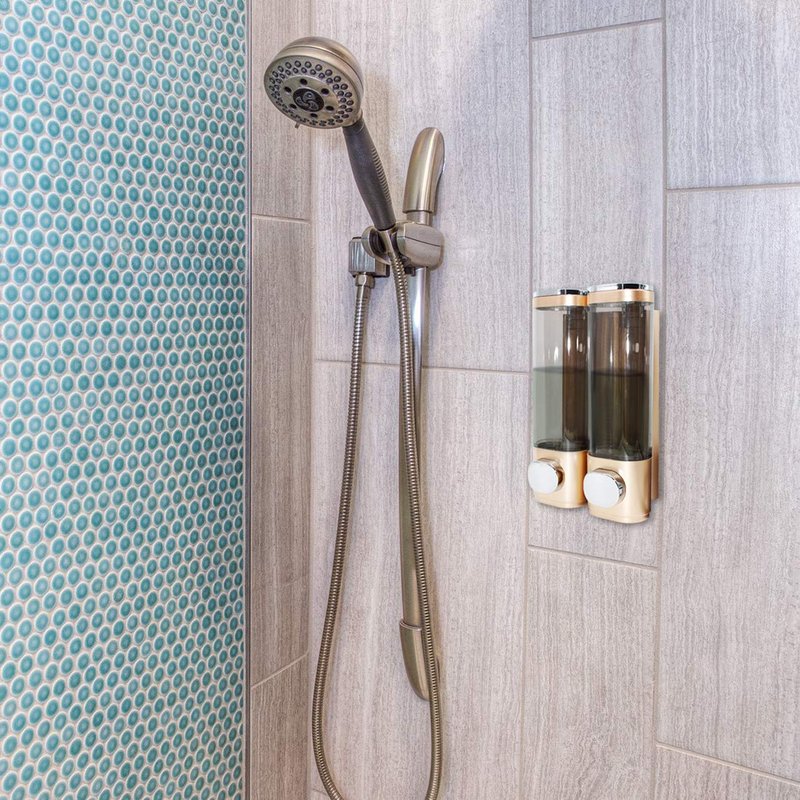 2-Chamber Soap Dispensers Wall Mount,400ml Bathroom Shower Pump Dispenser,Press Manually Lotion Shower Soap Dispenser Usefor Home,Bath,Kitchen,Hotels,Restaurants(Champagne)