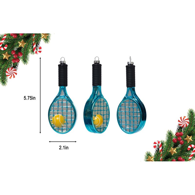 - Quantity: 2pcs glass tennis racket racquet with ball ornaments for Christmas tree.