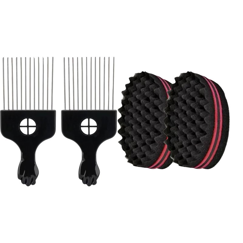 2 Hair Sponge & 2 Hair Pick (Pack) Afro Comb, Hair Pick and & Hair Styling Sponge