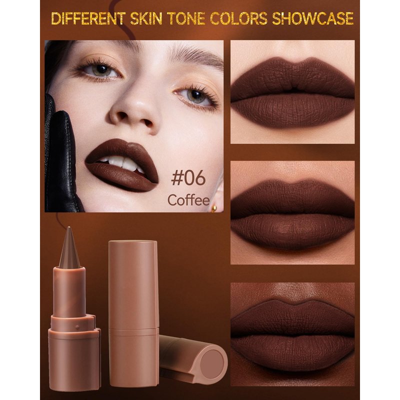 2 in 1 Lip Liner Lipstick,Coffee Nude Brown Lip Liner Lip Gloss,Velvet Matte Sharpened Head Lip Tint Stain,Long Lasting Waterproof,Highly Pigmented Non-sticky Tinted Lip Balm,Lip Makeup for Women-06