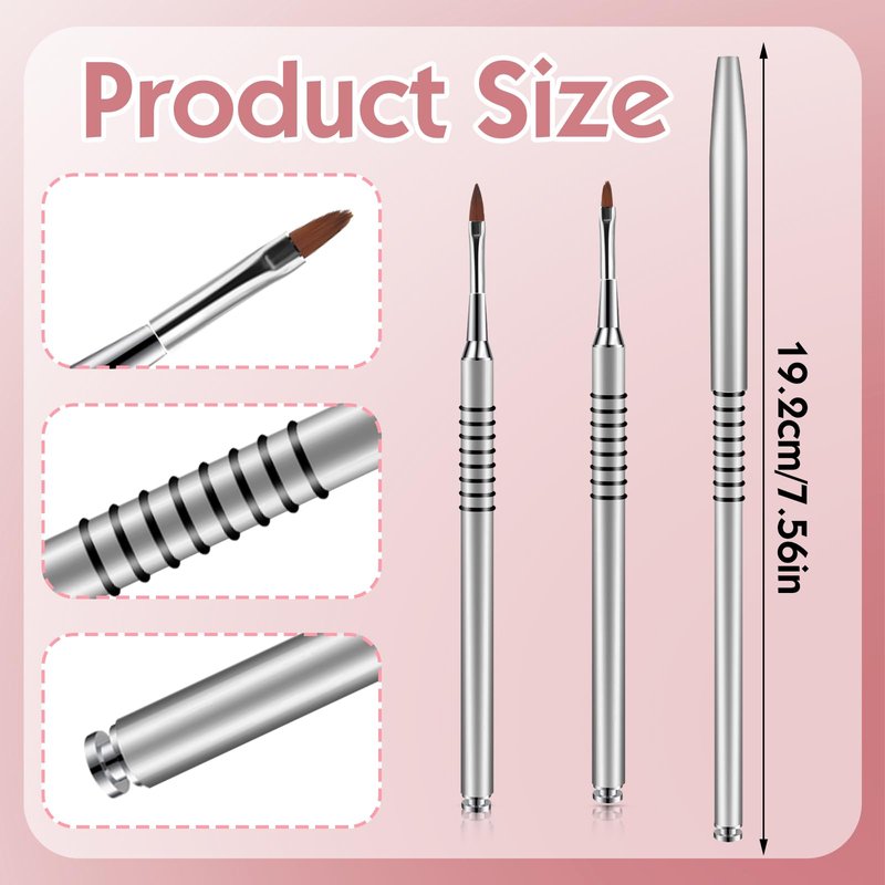 2 Pack 3D Nail Art Brush for Acrylic Powder, Kolinsky Acrylic Nail Brushes Set, Nail Lining Brush Nail Salon Painting Brush Pen with Non-Slip Handle, Silver Metal Nail Art Pen (Size #2#4)