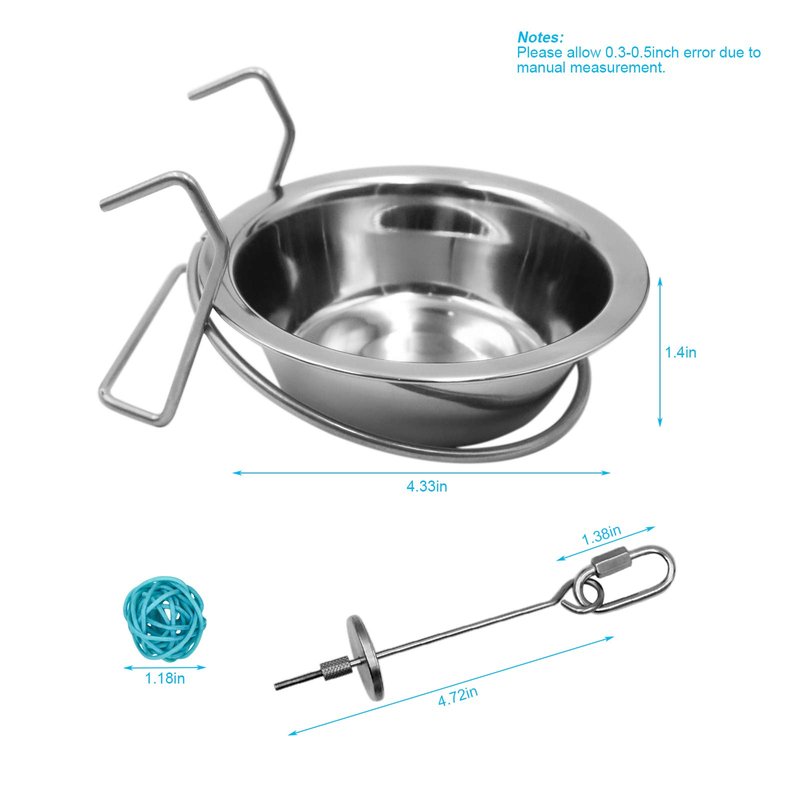 - Widely used: The stainless steel food water bowl can secure the bowl inside or outside the cage firmly with the wire hook frame, which helps to hold food and water, also withstands birds to stand on the edge of the feeding bowl, effectively preventing accidental dumping of the bowl.