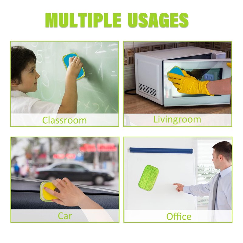 - REUSABLE - The chalk eraser is removable, the microfiber cloth is soft and not easily worn, easy to clean, the dry eraser is made of EVA material, environmentally friendly and harmless, no dust troubles, children can use it at ease and can be reused