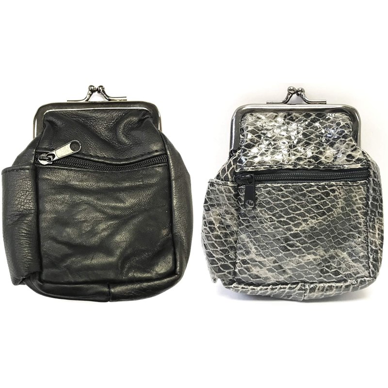 [2-Pack] Eclipse Full Lamb Skin Cigarette Case Pouch, Coin Purse, Lighter Holder & 2 Zipper Pockets, Holds 100s Size (Long) Cigarettes, 3204 {Choose Your Own Colors!} (Black & Black Snake)