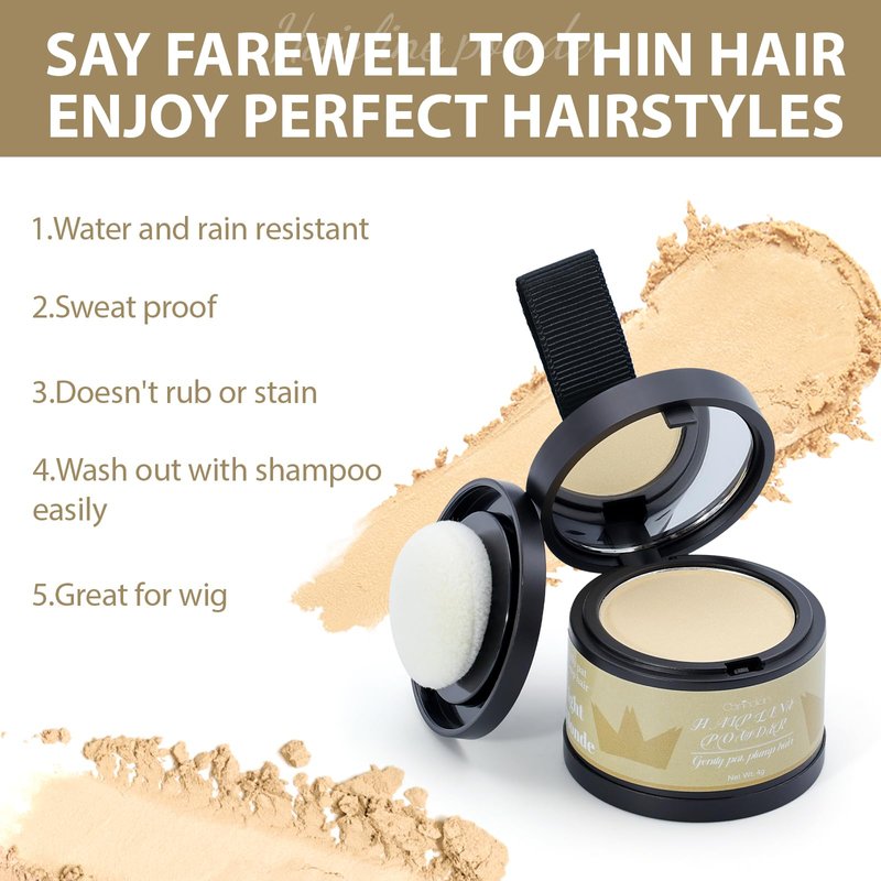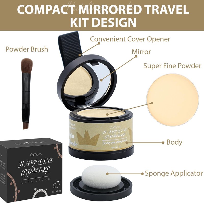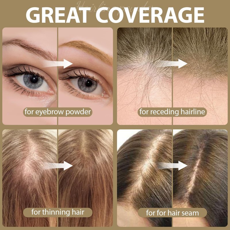 Say goodbye to gray roots, bald spots, and thinning hair with this cutting-edge hair powder specifically designed for women looking to enhance their hairline and achieve -looking results Hairline Powder offers instant coverage that lasts over 14 hours, ensuring you stay confident and fabulous all day long With its easy application process, you can effortlessly achieve the perfect look in minutes, making it an essential addition to your beauty routine The compact mirrored travel kit design makes it convenient to carry with you wherever you go, ensuring you always have the tools you need to maintain your flawless hairstyle Whether you're dealing with gray hair coverage, bald spots, or simply want to enhance your hairline for a fuller look, this hair powder is your go-to solution Its good effect blends seamlessly with you existing hair color, giving you a flawless finish every time Perfect for women of all ages and hair types, this innovative hair powder is the ultimate hair cover-up for those seeking a quick and effective solution