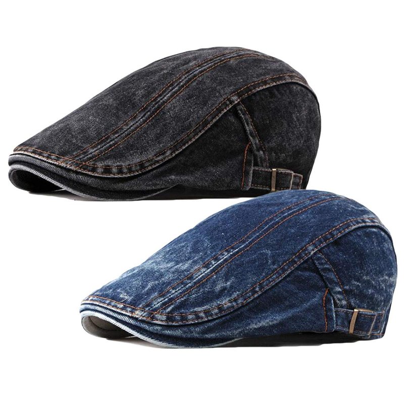2 Pack Mens Denim Cotton Newsboy Cap Ivy Gatsby Driving Hunting Cabbie Hats (2 Pack-I)