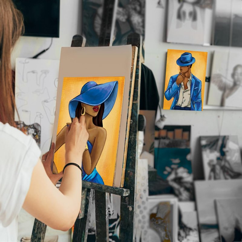 2 Pack Paint and Sip Canvas Painting Kit Pre Drawn Canvas for Painting for adults Stretched Canvas Couples Games Date Night Afro Elegant Gentleman and Lady Couple Paint Party Valentines Gift