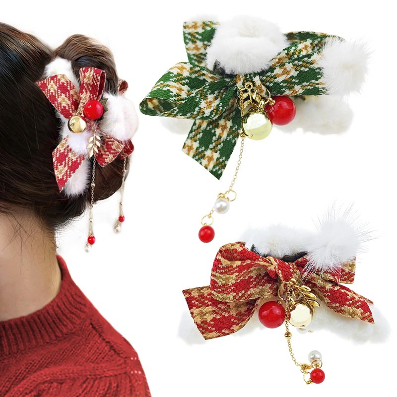 - 【CHRISTMAS ELEMENT DESIGN】- Add some festive flair to your hair with our fluffy plush hair catch barrette. Featuring a Christmas color scheme, grid bowknot, and jingle bell. Suitable for women and girls of all ages, our hair claws are a versatile addition to any hair accessory collection.