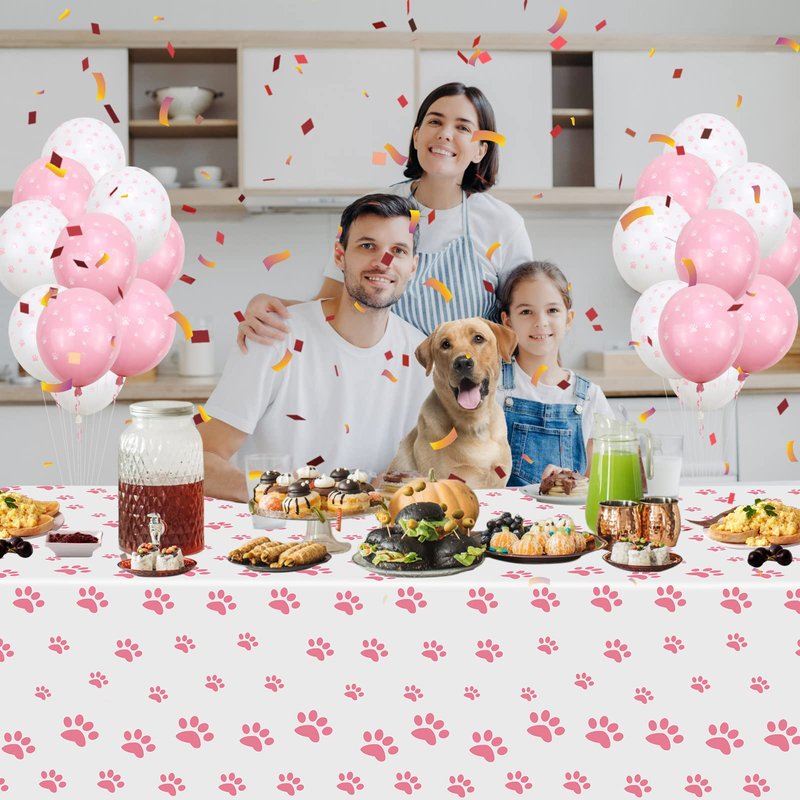 - 【What You Get】You will get 2 pieces of pink puppy paw print table cloths. They are designed with cute paw patterns, easy to meet the needs of all party table decorations and replacement.